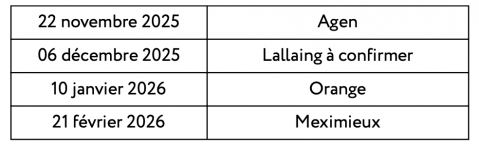 - Samedi 6 juin 2026 (Lieu à confirmer) Rencontre :